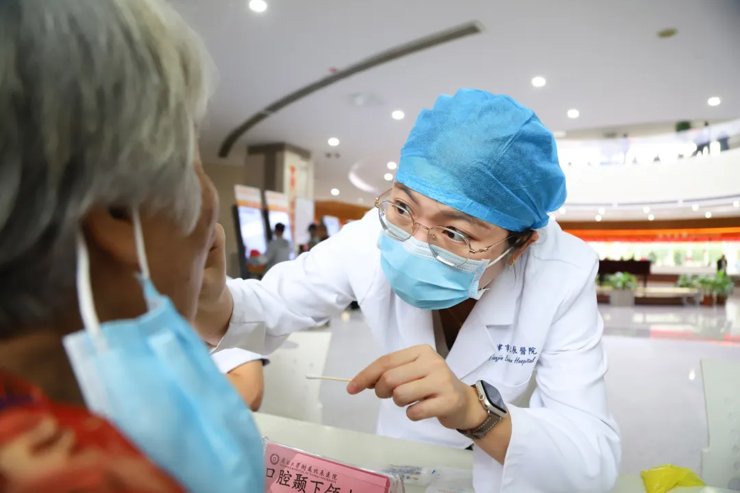院内院外健康服务同步进行,9月19日,口腔科医生来到果园新村街社区卫生服务中心,为社区居民现场义诊咨询。