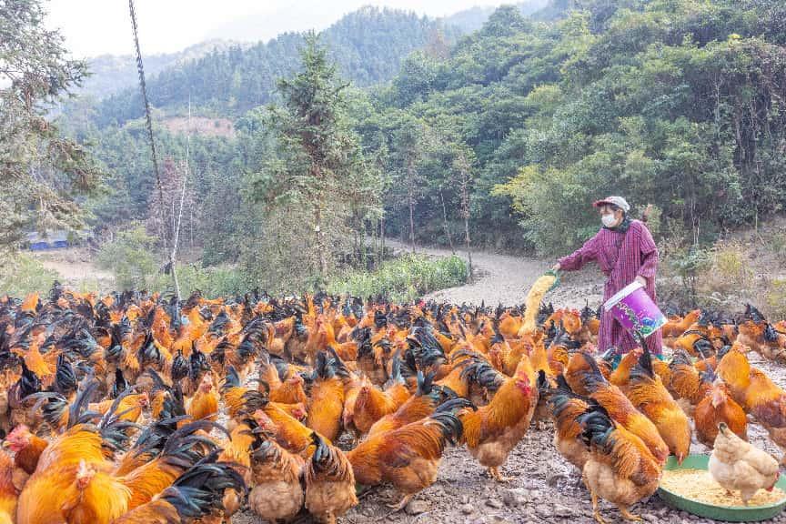 1月3日,在广西蒙山县夏宜瑶族乡夏宜村一个林下山地鸡养殖场,饲养员在给山地鸡投放饲料。该养殖场利用周边丰富的林木、山地资源,白天让山地鸡到林下觅食、活动,饲养出来的土鸡肉质非常好,销售价格远高于市场价格,经济效益显著。去年,该养殖场出栏土鸡2万多羽,销售收入200多万元。近年来,当地充分发挥山区资源优势,积极引导群众发展林下养殖经济,实现种植、养殖立体增收,生态、经济双赢,助力乡村振兴。