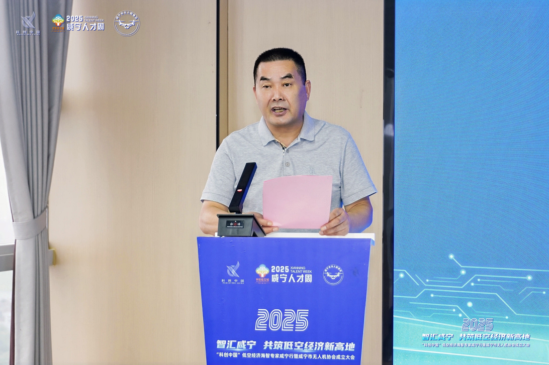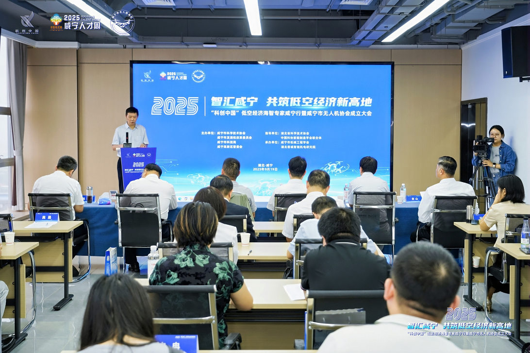 桂蕊飘香盈桂巷,秋枝弄影绕秋湖。在全国科普月暨咸宁市人才周活动开展之际,9月19日,2025年“科创中国”低空经济海智专家咸宁行暨咸宁市无人机协会成立大会在咸宁举行。省科协正厅长级干部陈兴荣,湖北省低空经济产业发展联盟副理事长王世喜,咸宁市委常委、组织部部长徐小兵出席活动并致辞。咸宁市科协党组书记高晟主持会议。