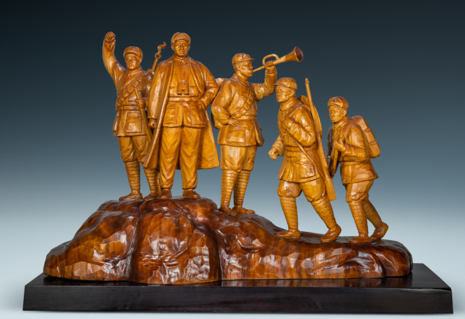 《长征》是由张木芳创作于2021年的木雕作品。作品长109厘米,宽43厘米,高75厘米。现藏于中国工艺美术大师博物馆。该作品以黄心楠木为原料。作品截取长征途中的片段,艺术构思缜密,以写实的手法雕刻出长征这一历史事件。画面紧紧扣住特定历史时刻中的人物的境遇,人物主体精心刻画,凿迹刀痕与衣纹褶皱相匹配,符合长征中战争的环境,使人物平凡中凸显坚毅。作品特点在于在人物形象塑造和精神气质的挖掘,展现出特定的历史风貌,从而体现出一种朴素与崇高相结合的精神境界和美学价值。
