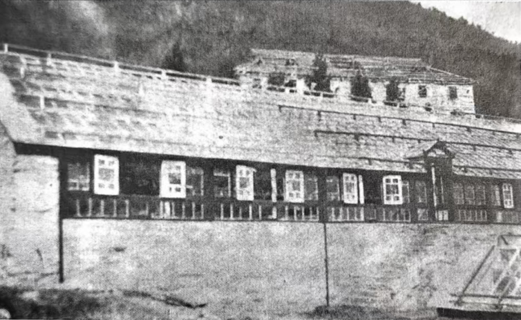 (1938撤离之前的庐山森林植物园。前为温室,后为尚未竣工的森林园艺实验室)