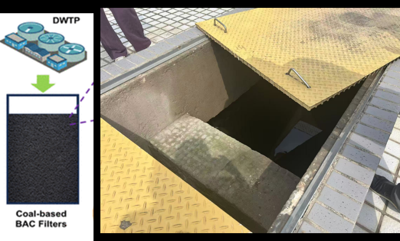 活性炭在饮用水系统中的应用,右图为某实际水厂活性炭滤池。