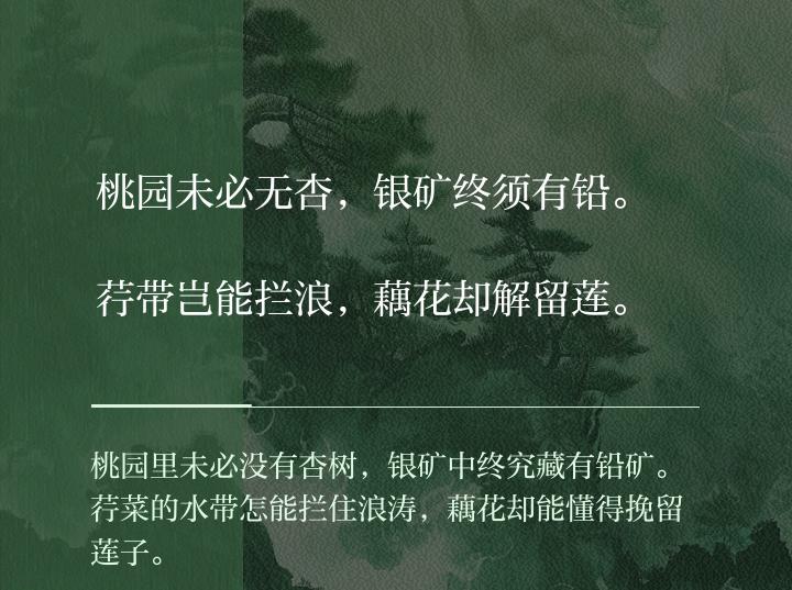 北宋文学家苏轼曾创作一首六言绝句《六言乐语》,全诗仅四句描述自然物象,却展现了事物之间相互关联的辩证关系,寓理于物。