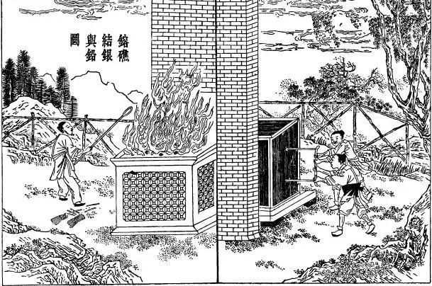 两者既然共生,要提炼银,就需要把它们分离出来,不过古人在实践中早已总结出一套行之有效的方法:那就是利用铅和银能够互熔,且熔点、沸点、密度等不同的特性,将含银的铅矿石覆盖一层木炭,进行煅烧。待木炭烧成炉灰,与铅矿石熔为一体,通入空气使温度进一步上升,并使铅氧化成氧化铅(即中医中的密陀僧),下沉到炉灰中,银则因不易氧化、密度较低而富集在灰上,降温冷凝后就能得到初步提纯的银以及还能继续提纯的银铅合金。再将银铅合金继续放在熔炉中不断鼓风通气加温熔炼,使铅完全汽化,剩下的就是得到进一步提纯的银。这就是《天工开物》中提到的“沉铅结银”,也叫“灰吹法”。这是化学分离技术的早期实践,可以说是古代冶金史的一座里程碑。