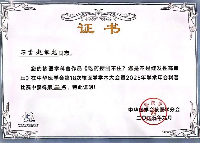 主治医师石雪“吃药控制不住?您是不是继发性高血压”核医学科普比赛