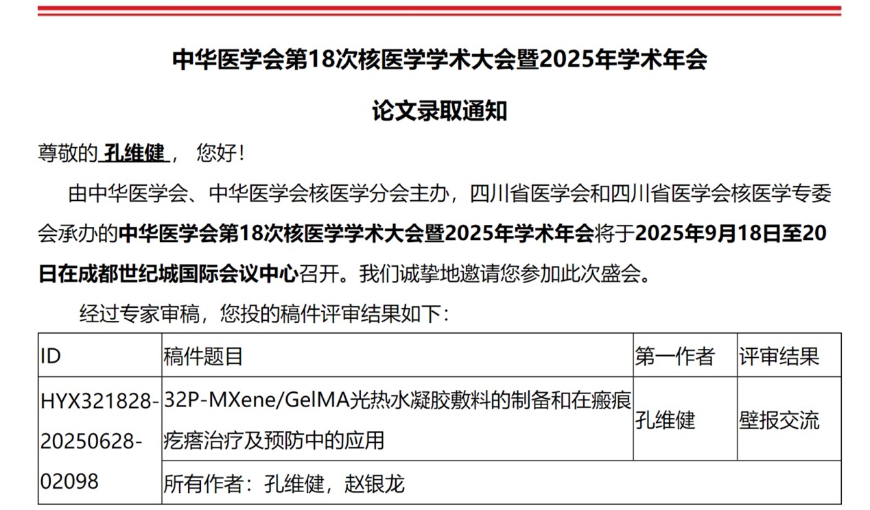 中华医学会第18次核医学学术大会暨2025年学术年会于9月18日隆重启航,本次会议由中华医学会、中华医学会核医学分会主办,四川省医学会和四川省医学会核医学专委会承办。大会以"精准融合,智领未来"为主题,旨在为推动我国核医学与分子影像的发展,积极发挥中华医学会核医学分会的学术引领作用,搭建高水平、高层次的平台以促进核医学与分子影像相关领域同仁进行学术交流与合作、加强我国核医学领域的人才培养。吉大二院核医学科赵银龙主任团队受邀参加会议。