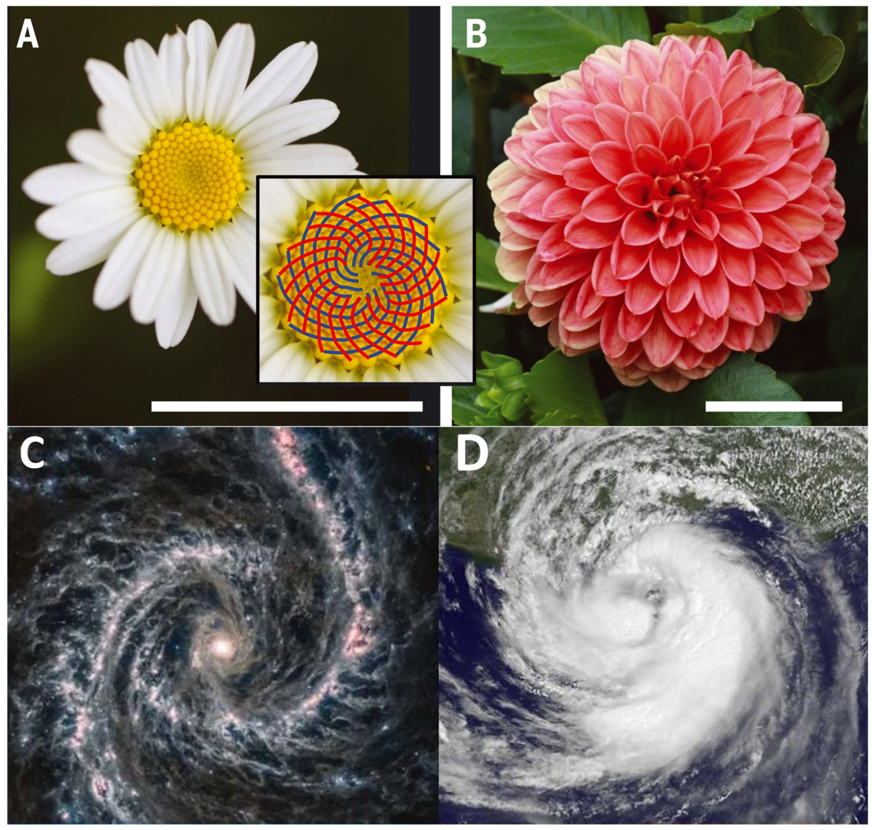 自然界中的斐波那契螺旋:小雏菊、大丽花、星系、台风