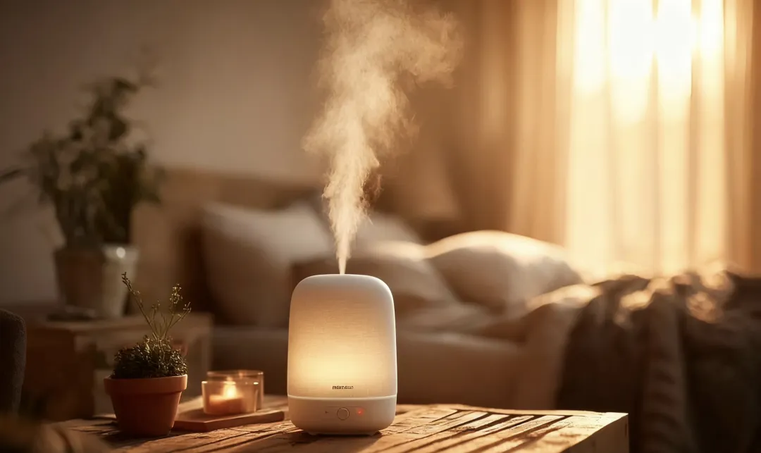 在卧室或常待的房间使用加湿器,将空气湿度保持在40%~60%,为皮肤创造一个湿润的环境。