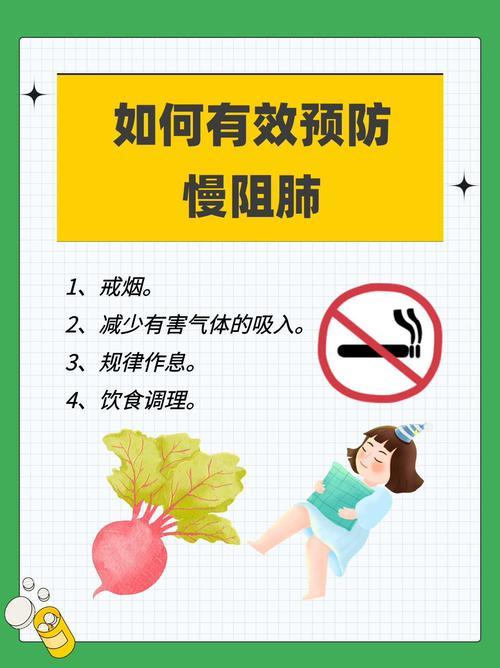 除了戒烟,在防治慢阻肺的过程中,要重视下列事项:尽量不要暴露于空气污染:职业粉尘(煤矿,金矿,水泥厂等),化学品(杀虫剂,甲醛等)。平时要做好防护措施,如戴口罩、减少在污染较重的时候出门等;增加身体锻炼:适量的体育运动对身体素质、肺部机能和呼吸机能都有很大的促进作用。建议每天进行散步、慢跑、游泳、太极拳等体育锻炼,一周3-5次,每次30分钟;做好保暖工作,预防呼吸道感染:随着季节的变化,天气的变化,要适时添加或减少衣服,以免着凉。平时要保持房间里的空气流通,尽量不要前往人多的地方,以免出现一些呼吸系统的疾病,比如感冒、流感等;要养成良好的生活习惯:平时要注意多食用新鲜蔬菜、水果、瘦肉、鱼类、豆制品等营养丰富的食物,不要吃辛辣、油腻、刺激性的食物。要有规律的作息,不能熬夜,要有足够的睡眠。