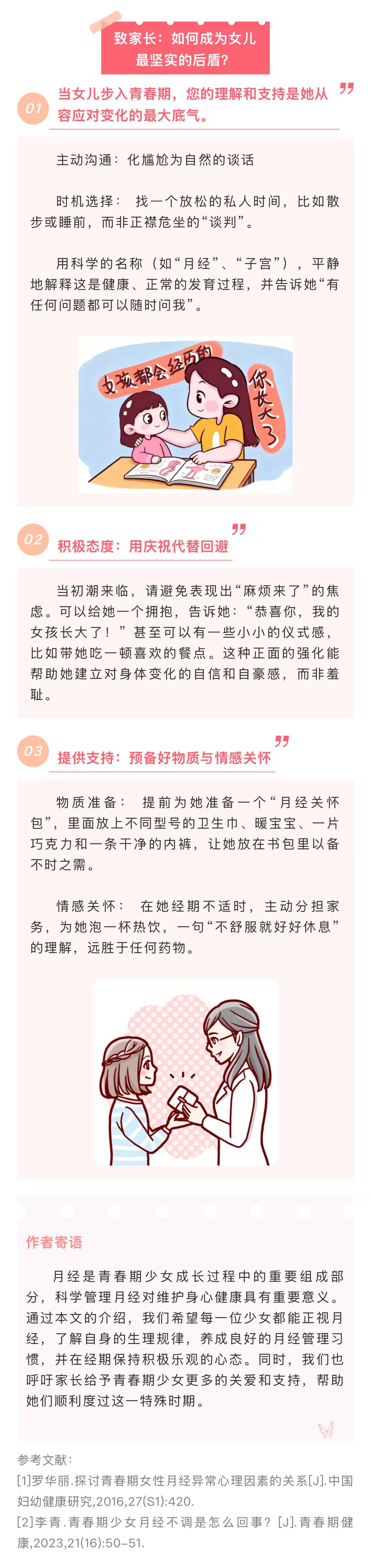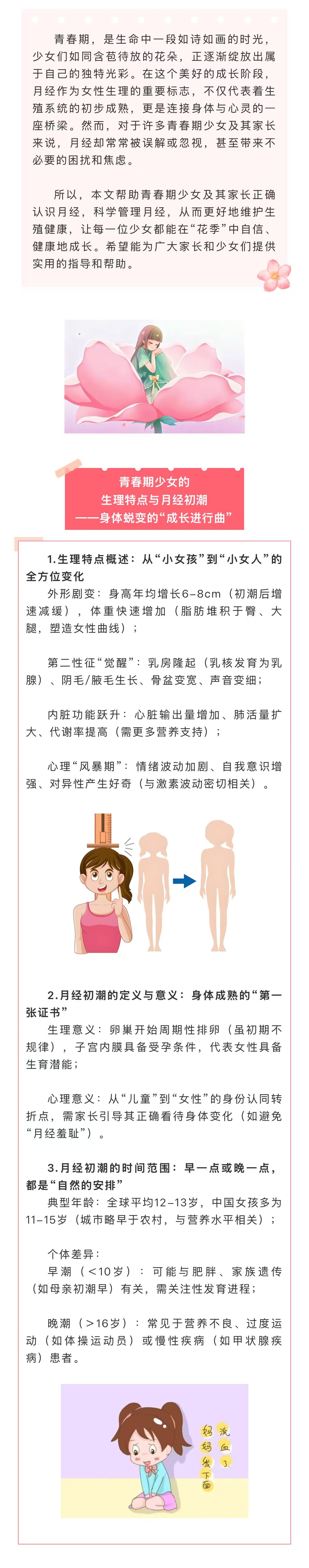 图文简介: 对于许多青春期少女及其家长来说,月经却常常被误解或忽视,甚至带来不必要的困扰和焦虑。本文帮助正确认识月经,科学管理月经,从而更好地维护生殖健康,让每一位少女都能在“花季”中自信、健康地成长。