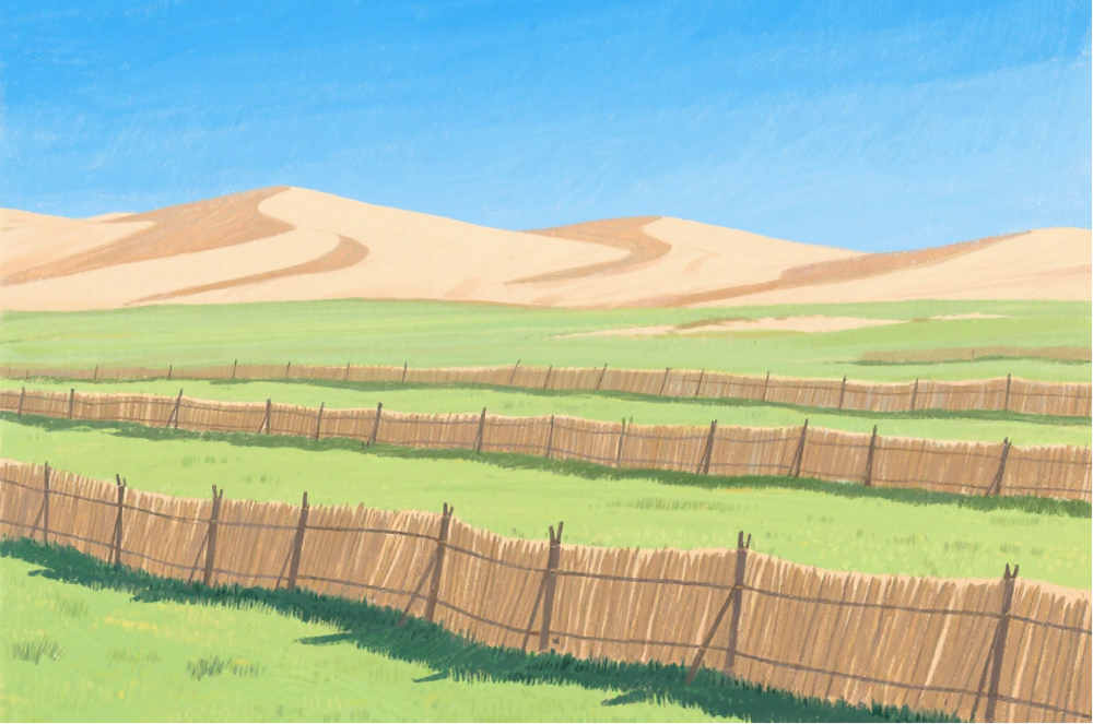 在乌珠穆沁风蚀沙化草原,蒙草生态团队采用“机械沙障+生物沙障+补播草种”的组合方案。这种方案不仅固定了流沙,还让草原重新长出了植被。据估算,沙障设置的长期投入每亩约为1000元。