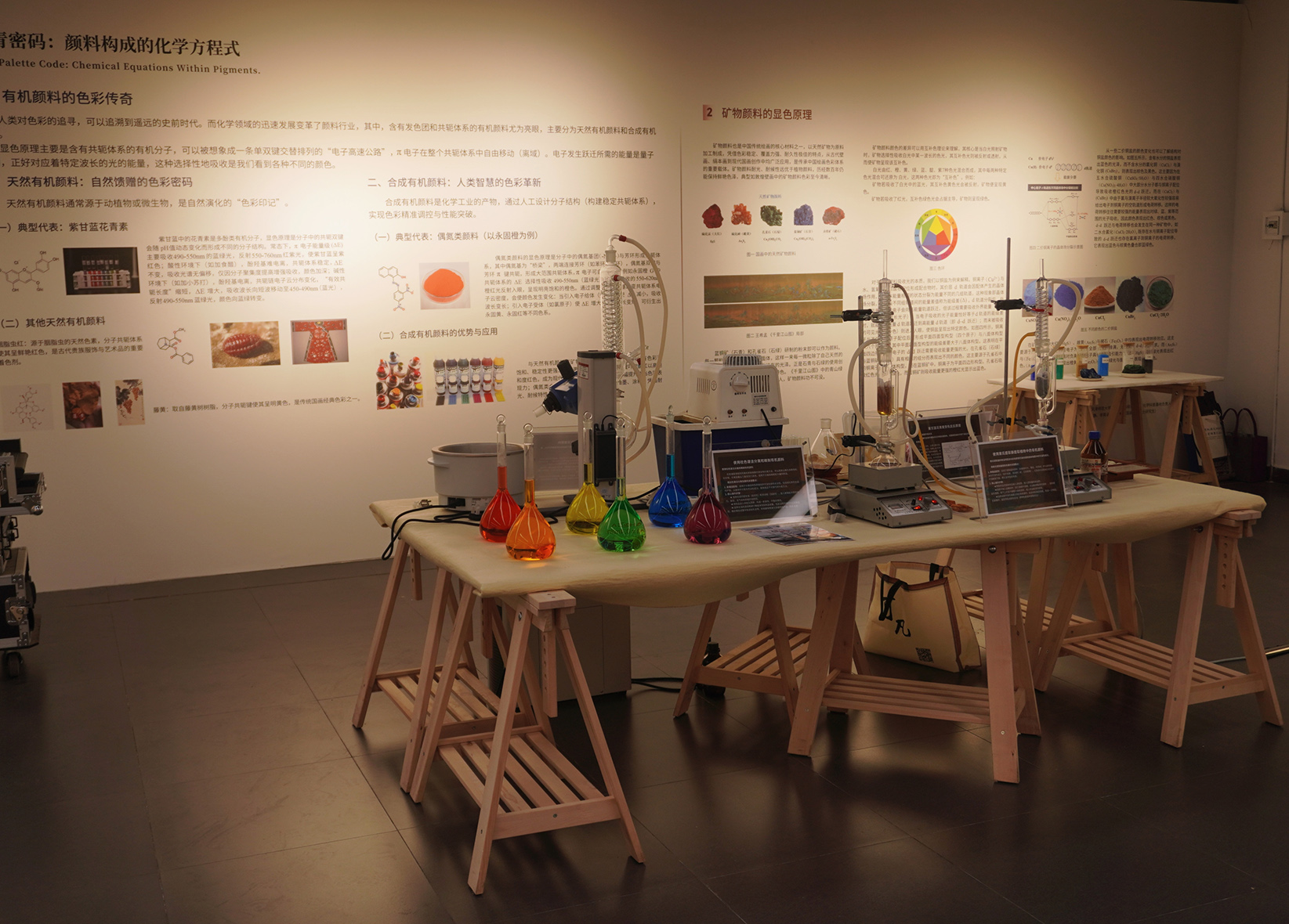 展陈设计以“看得见的色与看不见的理”为逻辑主线,将信息可视化、现场科学实验互动、颜料物质基础展示与经典传统作品及当代艺术案例有机整合。力求使观众既可以看到材料与技法的物质性,也能理解色彩背后的文化与思想脉络,进而感受艺术与科学交融的多重可能。