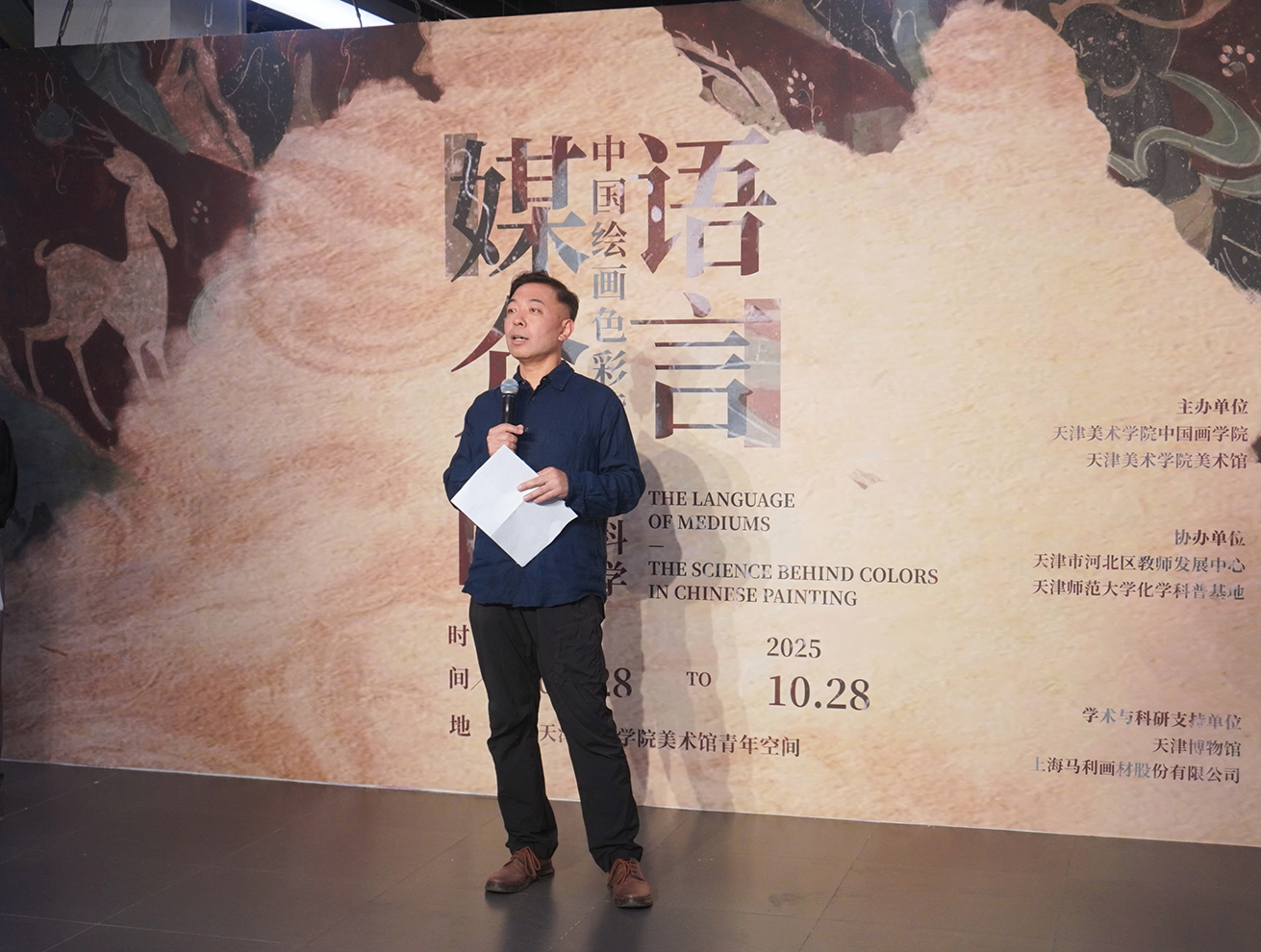 天津美术学院党委副书记、院长邱志杰教授在致辞中说,世界上每个民族都有自己制作颜料的方式,中国绘画色彩既是文化载体,也是科学研究的富矿,本次展览为艺术院校的教学与科研提供了新范式——未来将鼓励更多师生从科学角度挖掘传统艺术的当代价值,同时推动美育与基础教育、公共文化服务的深度融合,让传统绘画色彩在新时代“活”起来、“传”下去。