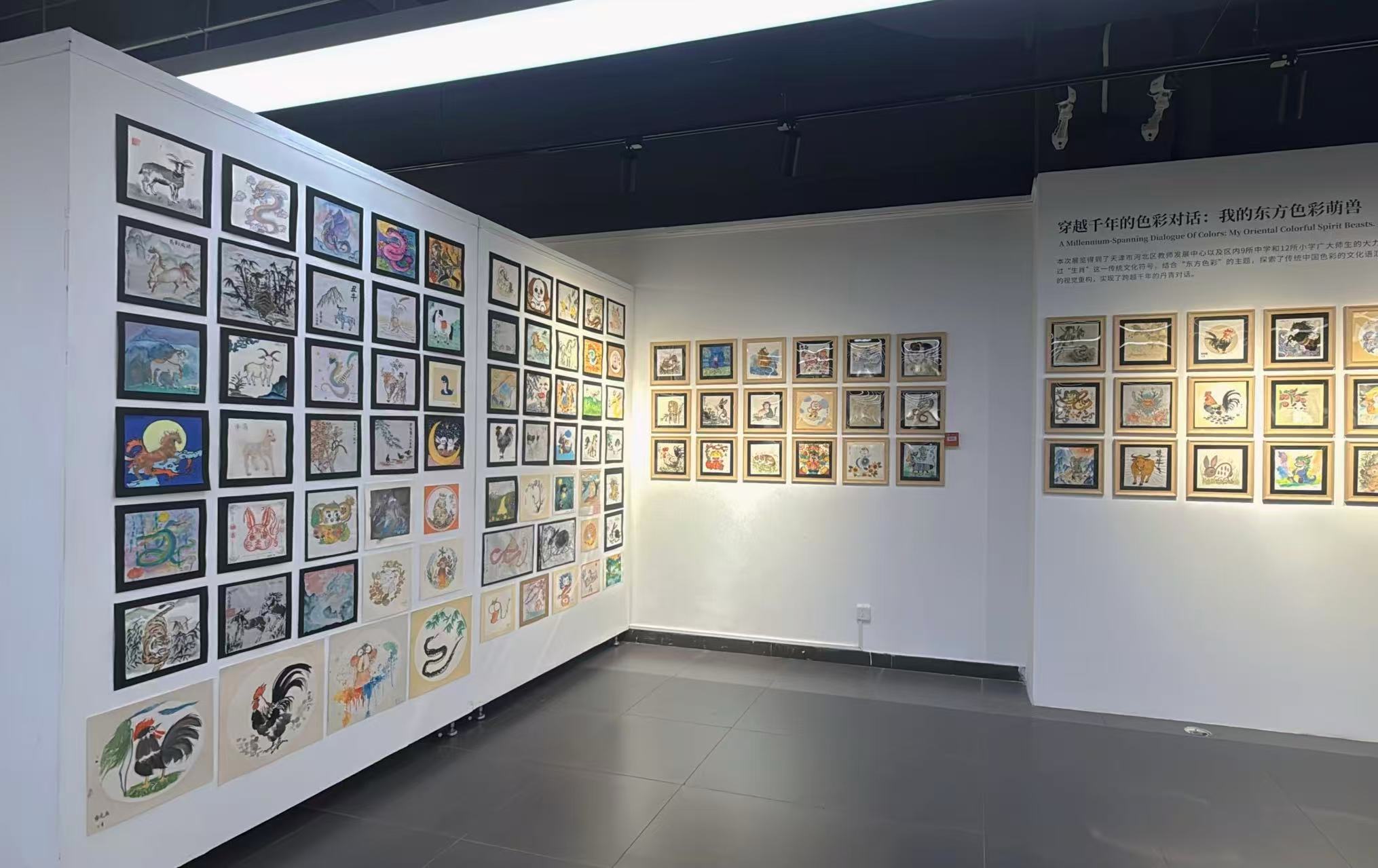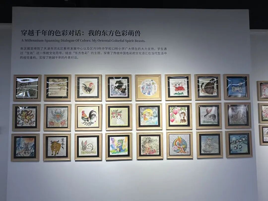 本次展览得到了天津市河北区教师发展中心以及区内9所中学和12所小学师生的大力支持,在“穿越千年的色彩对话:我的东方色彩萌兽”环节,200余名7至16岁的孩子,通过“生肖”这一传统文化符号,结合“东方色彩”的主题,探索了传统中国色彩的文化语汇在当代生活中的视觉重构,实现了跨越千年的对话。