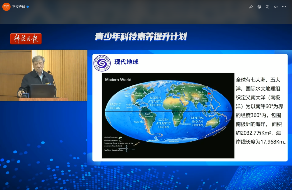 9月30日,由中国下一代教育基金会与中国平安主办、科技日报社支持的青少年科技素养提升计划系列情景大师课《人类的家园地球》由中国科学院院士刘嘉麒主讲,全国27个省区市1058所项目校师生及网友们一起观看了课程,全网观看量超468.2万人次,此次课程刘院士通过生动有趣的内容,呼吁大家一起实践“认识地球、保护地球、与地球和谐共生”的科学使命。