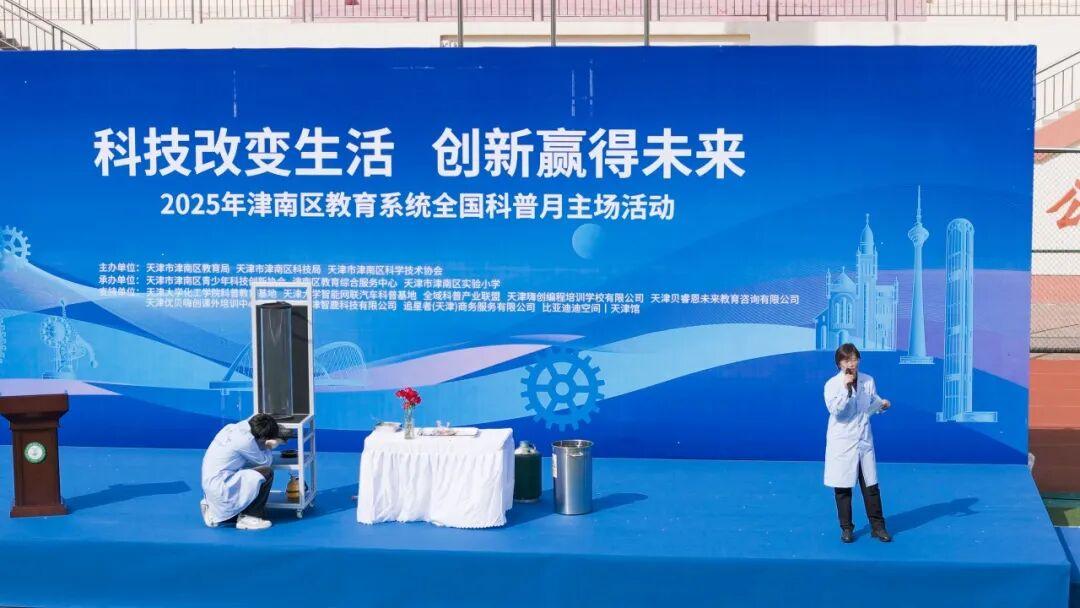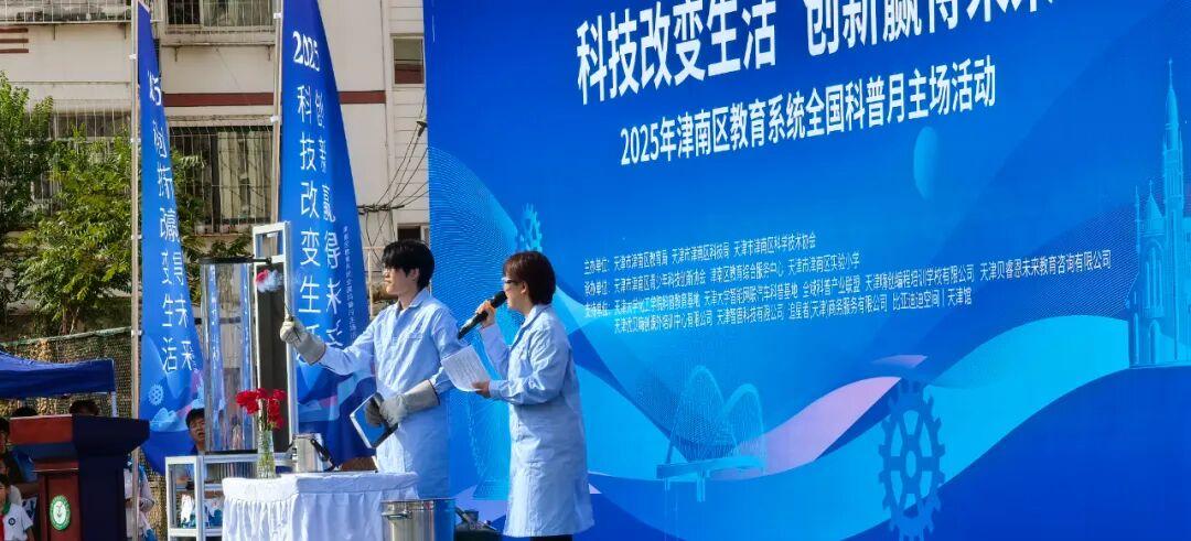 2025年9月17日,天津市津南区教育体系全国科普月主场活动于天津津南区实验小学隆重开幕。本次活动由津南区教育局、津南区科技局、津南区科学技术学会合力主办,津南区青少年科技创新协会助力,天大化工全国科普教育基地受邀为学生、家长以及老师们带来了一场别开生面的趣味科学秀,收获了在场观众热烈的掌声和观演同学们的阵阵惊呼。