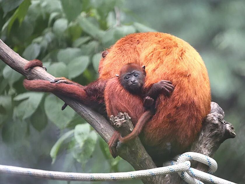 而皮卡也有自己的“小办法”:每当妈妈移动,他会收紧小爪子贴紧妈妈的皮毛,更妙的是,他还会把自己细细的尾巴缠在妈妈的尾巴上——这是红吼猴与生俱来的本领。