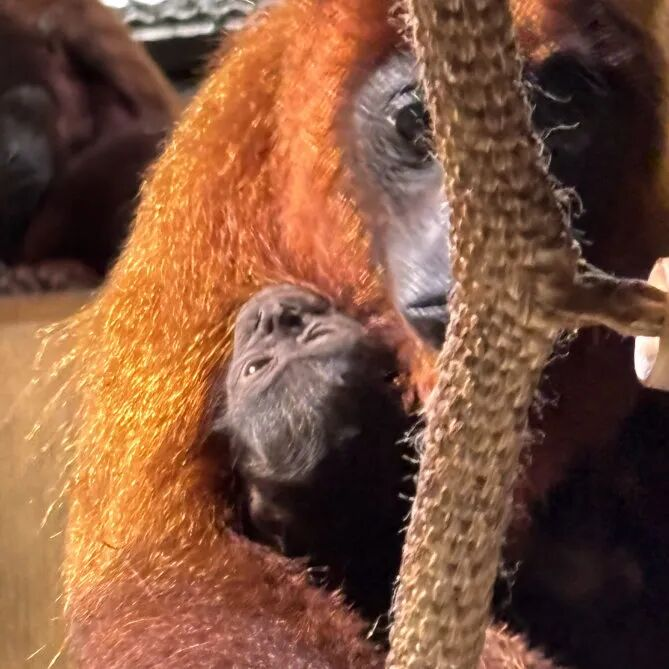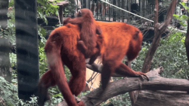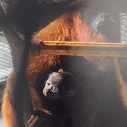 白天几乎时刻把幼崽紧紧抱在怀里,连换栖架时都会先用手托稳宝宝,确认抓牢了才慢慢移动。