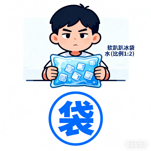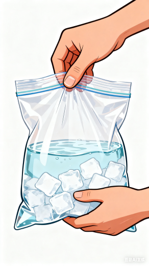1. 自制冰袋小妙招:用保鲜袋装冰块+冷水(比例1:2),捏起来软软的都是碎冰碴。注意:袋子不要装得过满,通常装入1/2至2/3容量即可,预留空间便于塑形贴合关节。务必扎紧袋口,防止漏水。