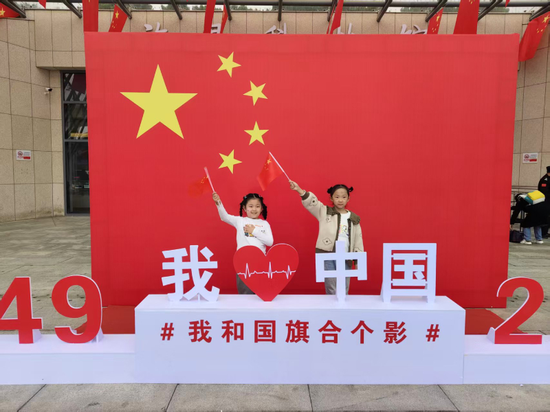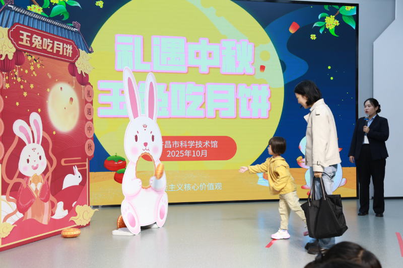 双节期间,许昌市科技馆内外喜庆氛围浓厚。门前“我和国旗合个影”主题打卡点庄重醒目,吸引市民纷纷驻足拍照,用镜头定格对祖国的深情告白;场馆内同步设置国庆中秋主题拍照点,让市民在互动中感受到浓浓的家国情怀。
