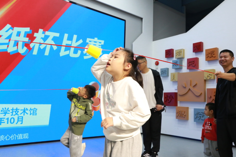 趣味体验活动同样精彩纷呈。“同心圆梦·圈住幸福”“勇敢闯关,瓶瓶大冒险”“趣味吹纸杯比赛”活动,以团队协作、趣味挑战的形式,成功点燃市民的参与热情。大家在游戏中释放活力、收获快乐的同时,更能赢得专属奖励,在科技馆的热闹氛围中尽享双节美好时光。