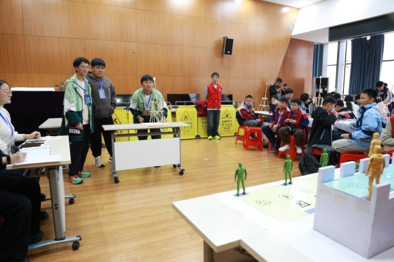 本届运动会共选拔全市中小学175支队伍近400名选手角逐市级决赛。赛事在“经典延续+创新突破”理念下,精心设置了水火箭比高、气弓箭打靶、铁丝陀螺比久、抛石机攻城、纸桥承重、新能源小车竞速六大经典赛项,以及鸡蛋撞地球、气垫冰壶对抗赛、自制无人机挑战赛、人工智能主题挑战赛四大崭新赛项。