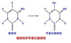 这是一个胞嘧啶甲基化,在传统认识上,这个位置其实没发生变化,因为甲基化胞嘧啶,还是胞嘧啶,测序都是C,但是,你觉得甲基化后的胞嘧啶和原来一样吗?肯定不一样(用甲基化测序可以测出来,方法就是用亚硫酸盐处理把这个甲基化胞嘧啶转换一下,然后按DNA的道道走)。