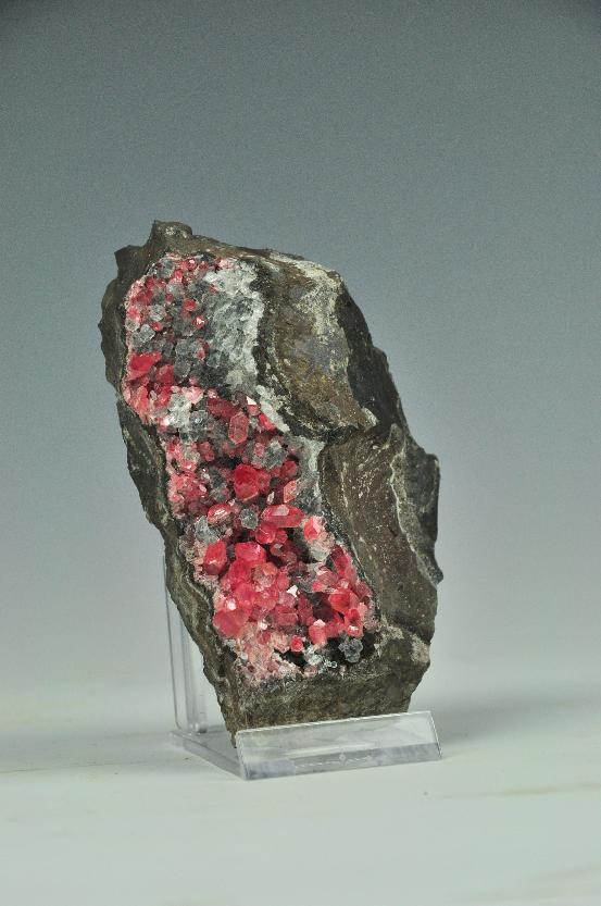 菱锰矿的形成跨越了亿万年的地质历史。它既可能在热液矿脉中悄然结晶,与蔷薇辉石、萤石等矿物共生,编织出绚丽的矿物交响曲;也可能沉潜于海底,层层堆叠成壮观的菱锰矿画卷。在中国贵州、湖南的深山之中,菱锰矿生于大地之中,成为提取金属锰的重要来源;而在美国、马达加斯加的矿洞深处,它又以宝石级的品质惊艳世人。其中,阿根廷的菱锰矿尤为独特,切开后呈现红白相间的环状花纹,被形象地称为“印加玫瑰”,如同古印加文明留下的神秘图腾。