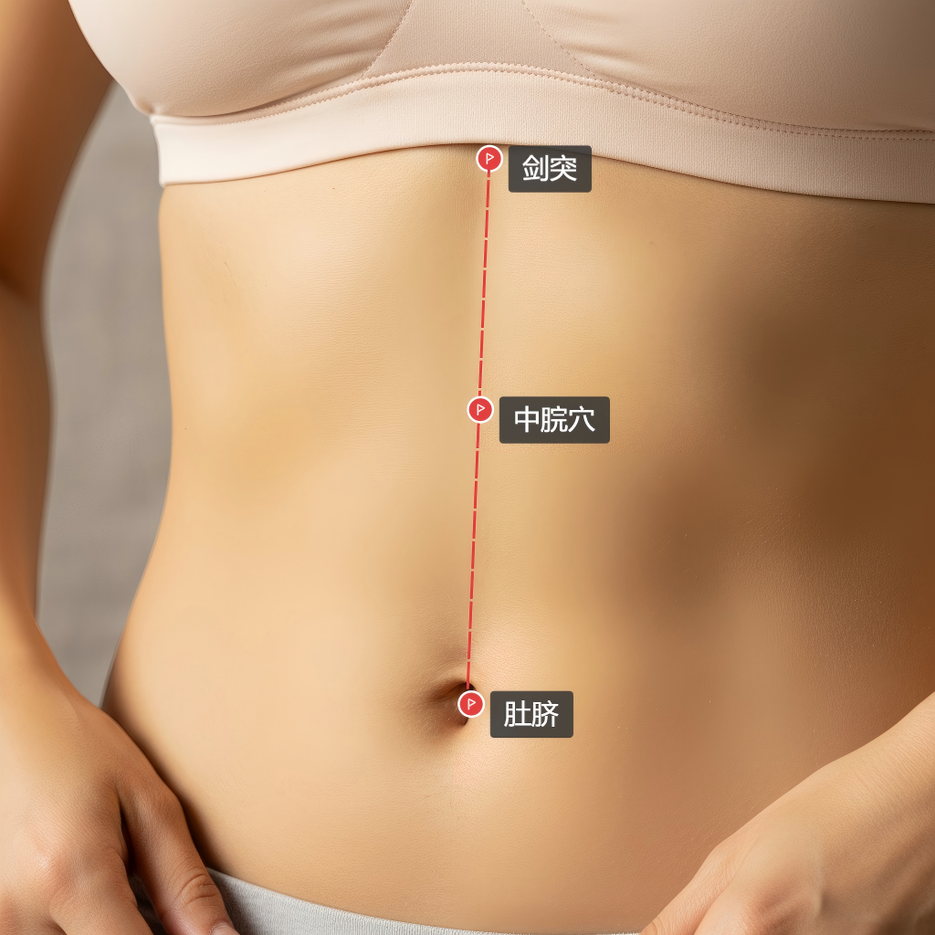中脘穴位于肚脐上方4横指的位置,是调理脾胃的要穴。通过按压中脘穴,可以调理脾胃功能,促进消化吸收,缓解因食物不消化引起的腹胀或胃痛。