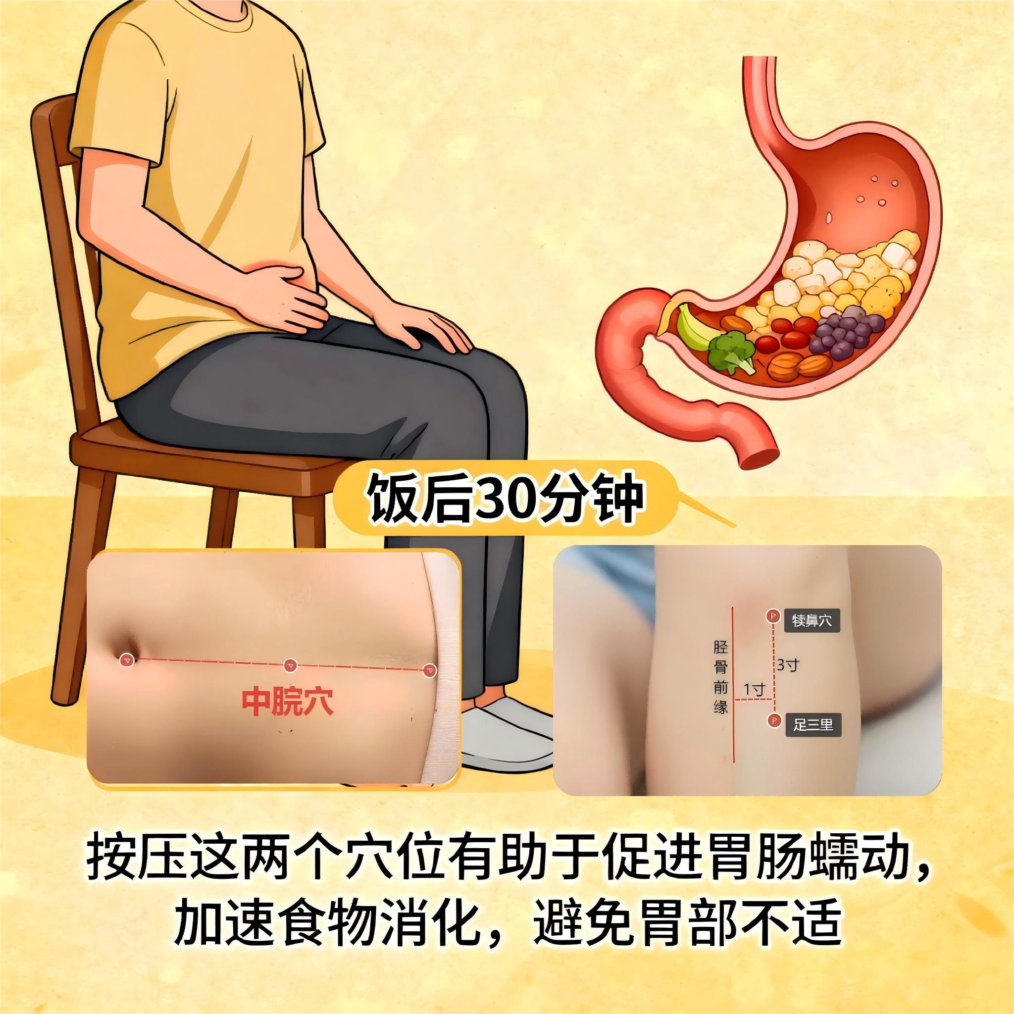按摩的最佳时间是饭后30分钟,这时候胃部正处于消化食物的关键期,按压这两个穴位有助于促进胃肠蠕动,加速食物的消化,避免胃部不适。