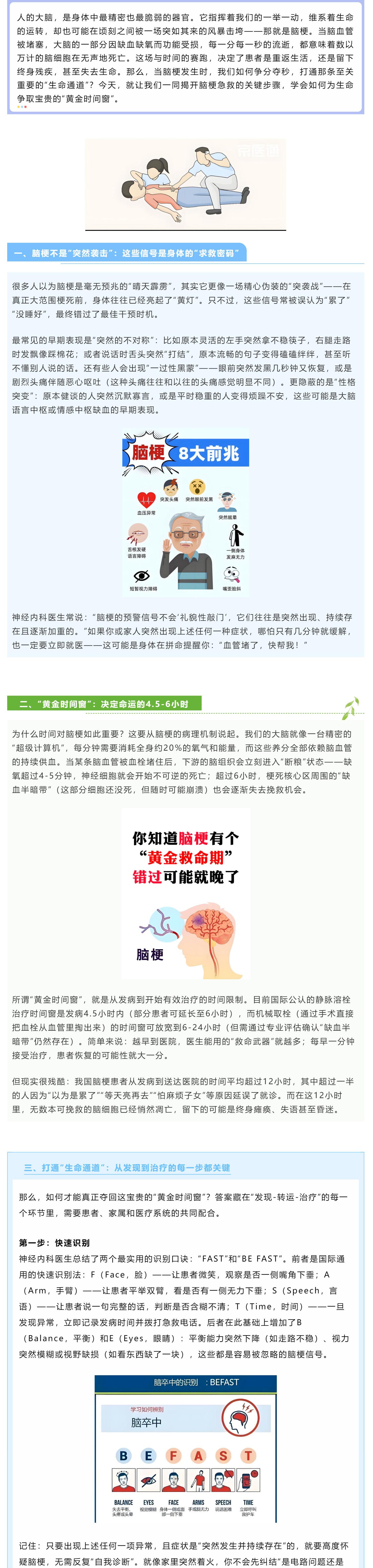 夺回“黄金时间窗”!神经内科医生:脑梗急救的“生命通道”如何打通?