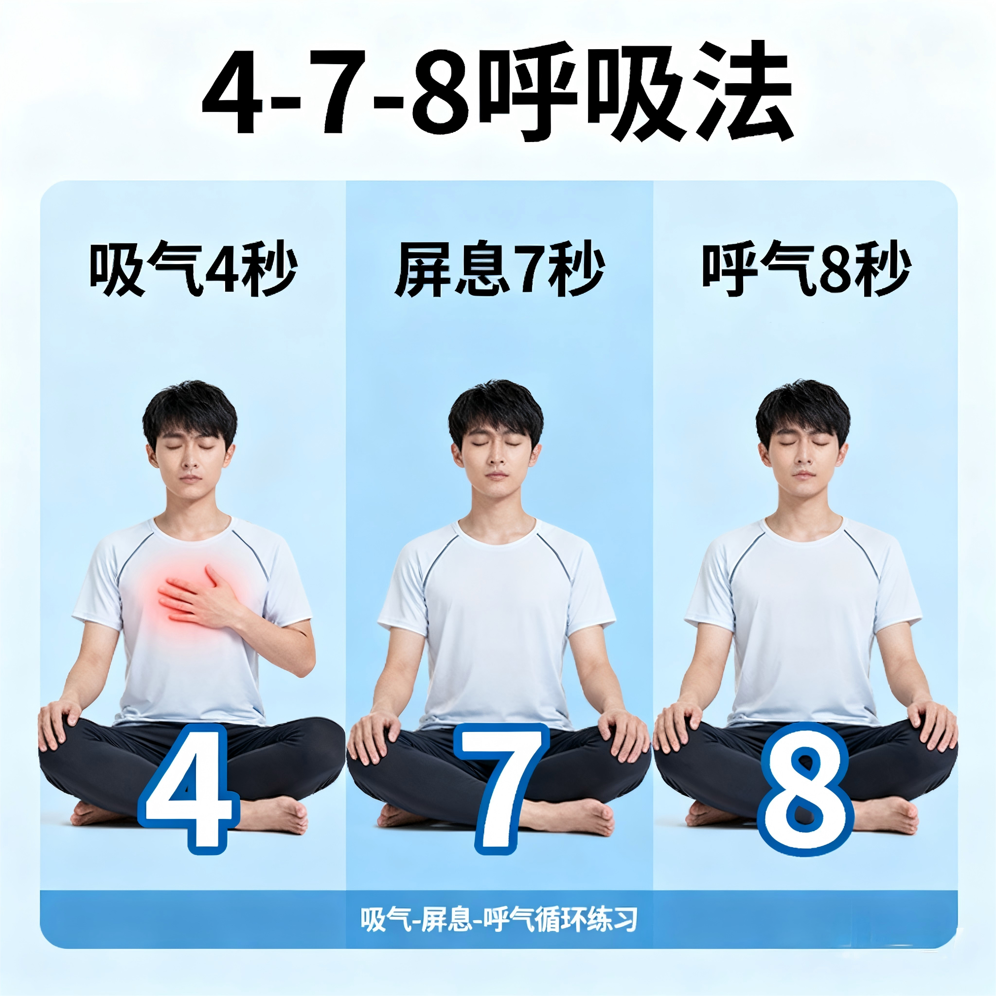 按压神门穴时,配合“4-7-8呼吸法”——吸气4秒,屏息7秒,呼气8秒。边按压边呼吸,可以更快进入放松状态,改善浅眠多梦的情况。