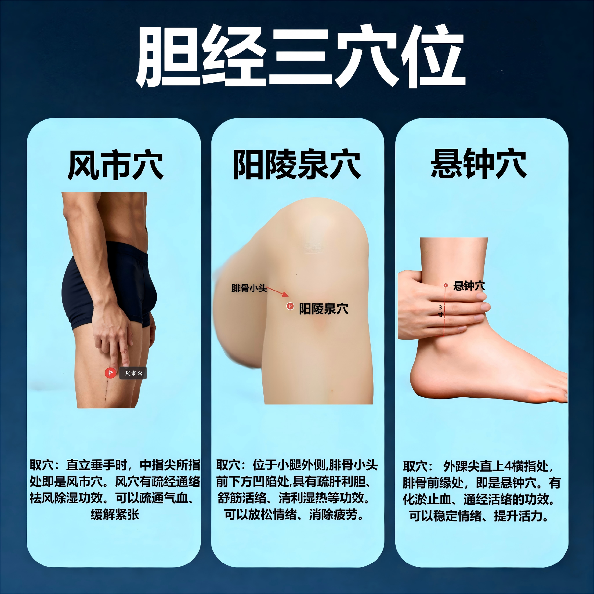 促进代谢:刺激胆经有助于排湿排毒、促进身体代谢。