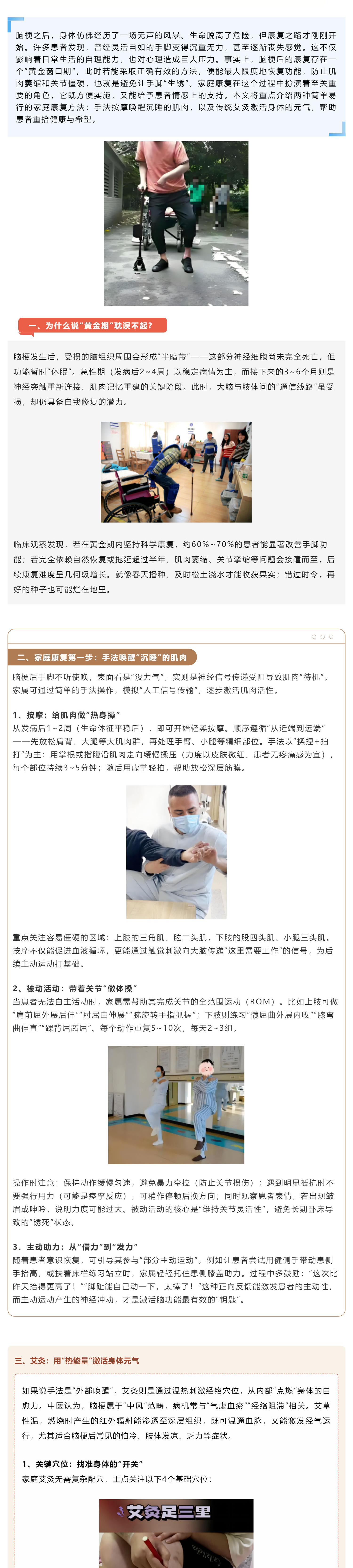 脑梗后别让手脚“生锈”!家庭康复黄金期:手法唤醒肌肉+艾灸激活元气