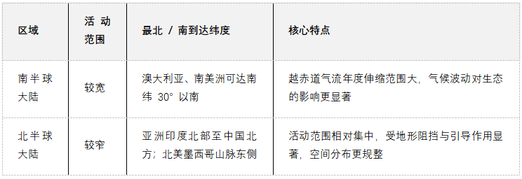 二、全球季风边缘活动带的 “版图”:南北半球差异显著