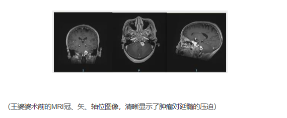 进一步的检查揭示了一个更严峻的事实:这个肿瘤不仅压迫着掌管呼吸心跳的延髓这个"生命中枢",更罕见的是,它同时起源于迷走神经和副神经出脑处。