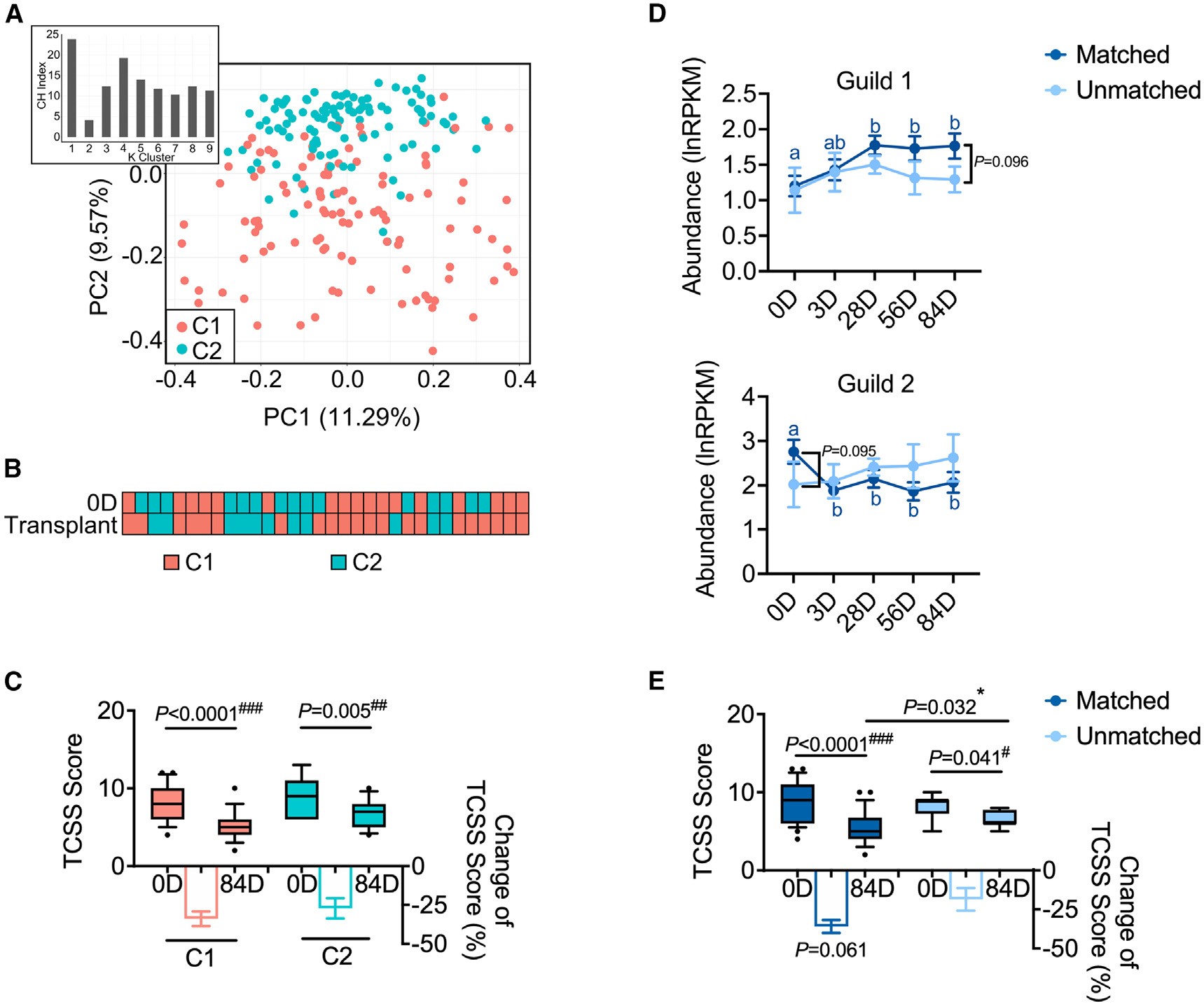 于是他们尝试“配型式移植”:当供体的 Guild 1 菌群与受体的菌群结构越相似,治疗效果越好。