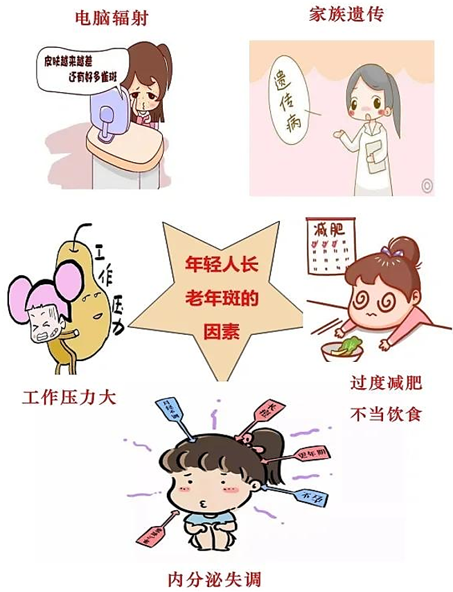 激素水平波动(如孕期、更年期)可能助攻老年斑生成。而肤色浅的小伙伴,由于对比度高,斑看起来会更明显。