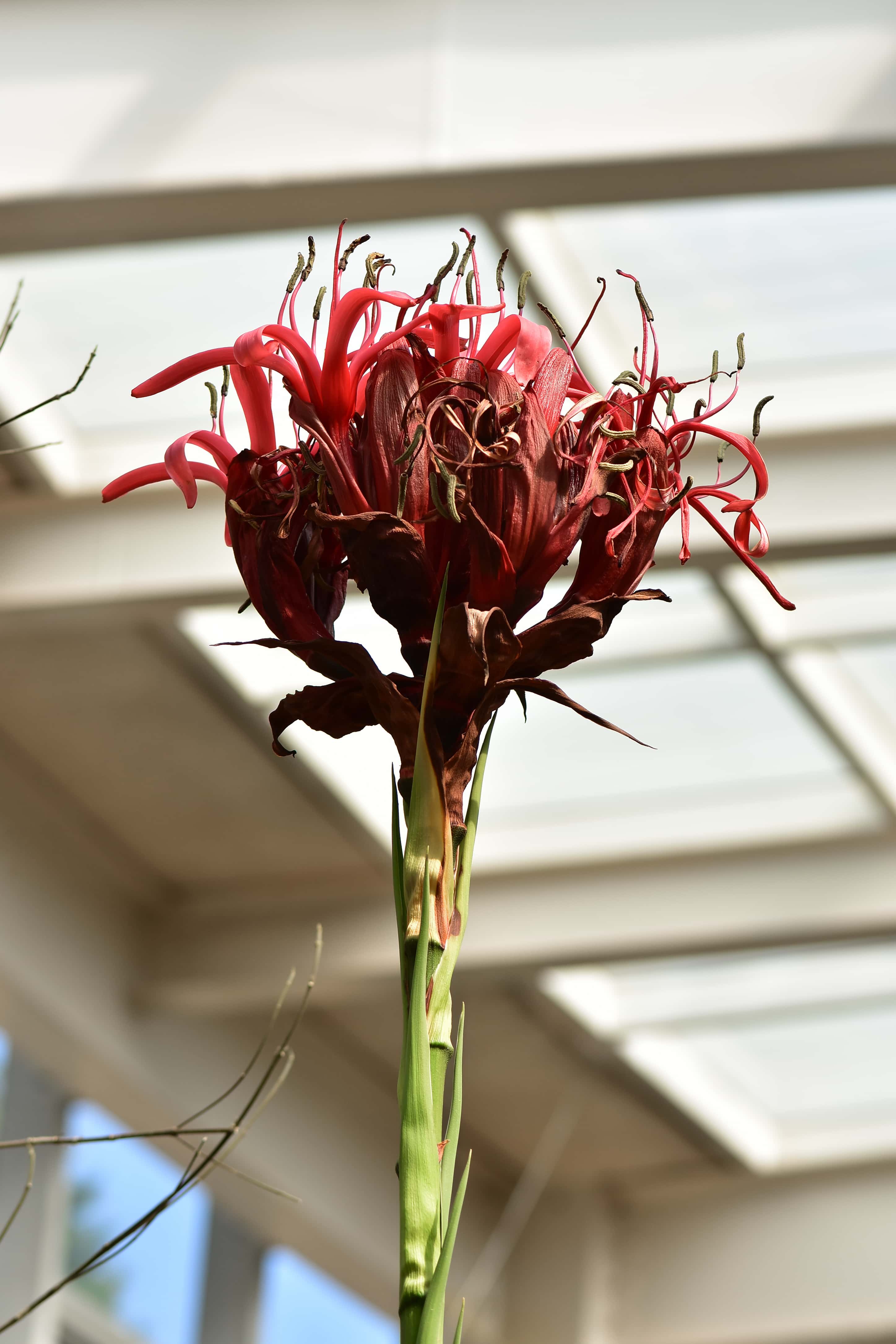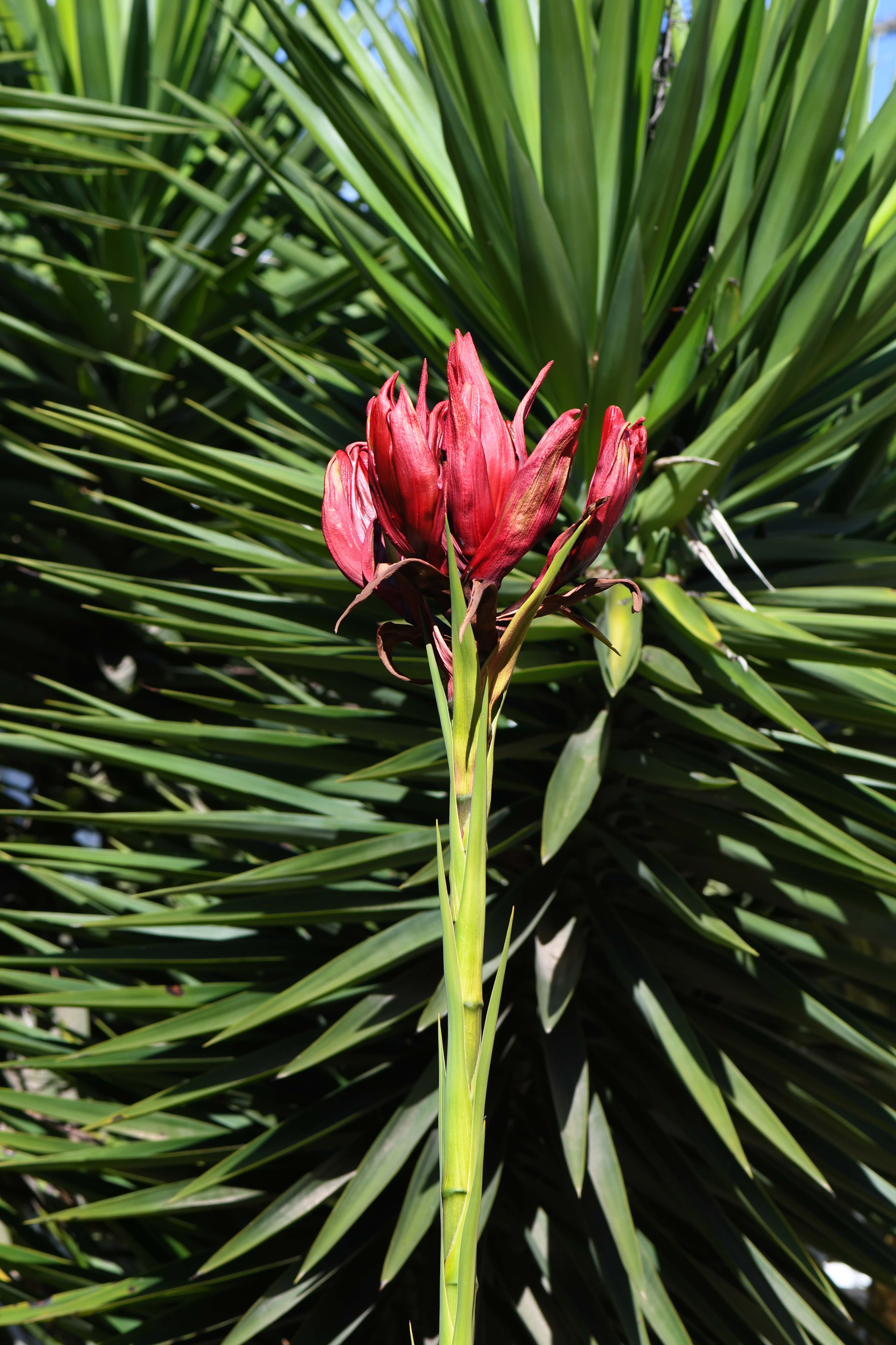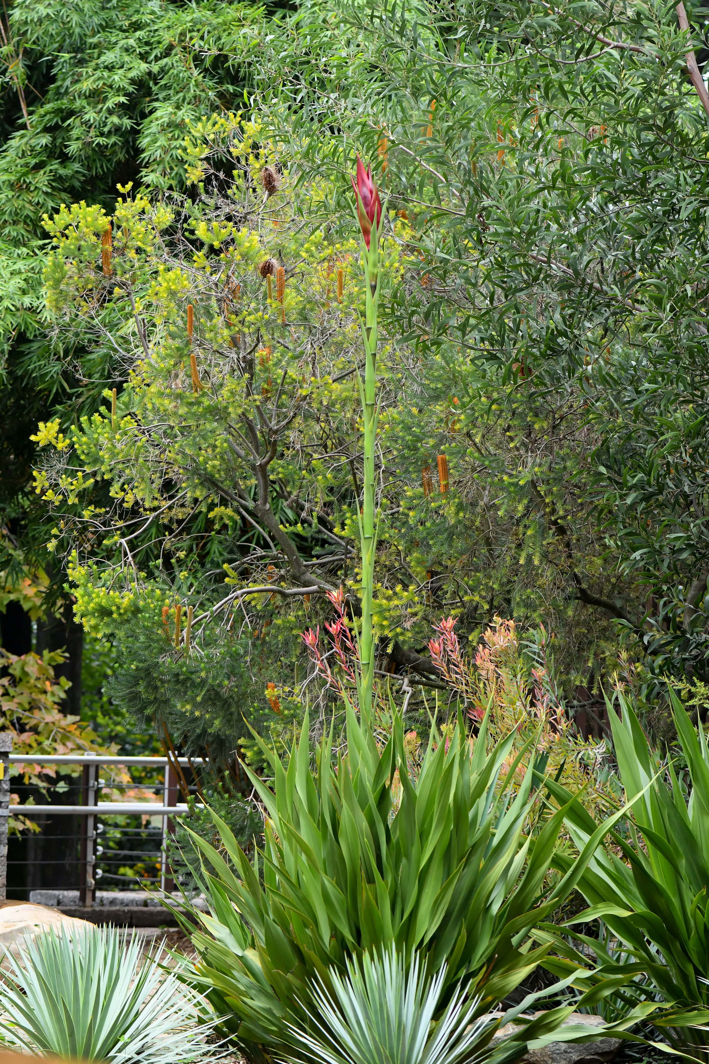 近日,昆明植物园扶荔宫门口的矛花抽出了2米多高的花葶,预计未来一个月内会绽放出火红的花朵,像一个高举的火炬,引人注目,欢迎大家前来赏花。