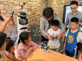 在半禾耕读学堂,智能普法机器人成为孩子们的“明星”,无人机飞行表演引发阵阵欢呼。实验室副教授王崎、杨志博士的科普课堂,为乡村孩子打开科技之窗。