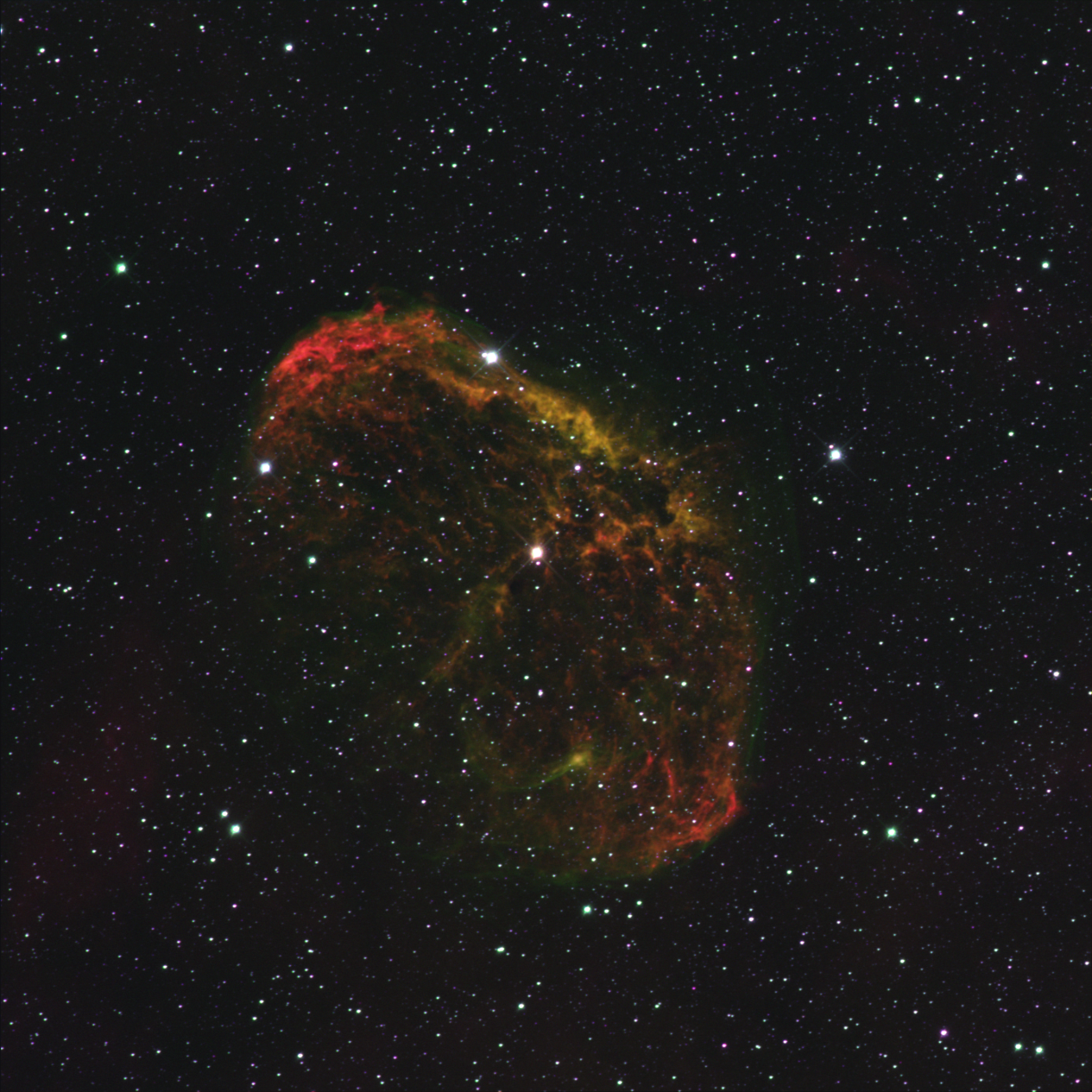眉月星云(Crescent Nebula),也称NGC 6888、Caldwell 27,是一个位于天鹅座方向的发射星云。它的直径约为25光年,距离我们约5000光年,亮度为7.4星等,以其独特的形状、绚丽的色彩吸引了广大天文爱好者的目光。