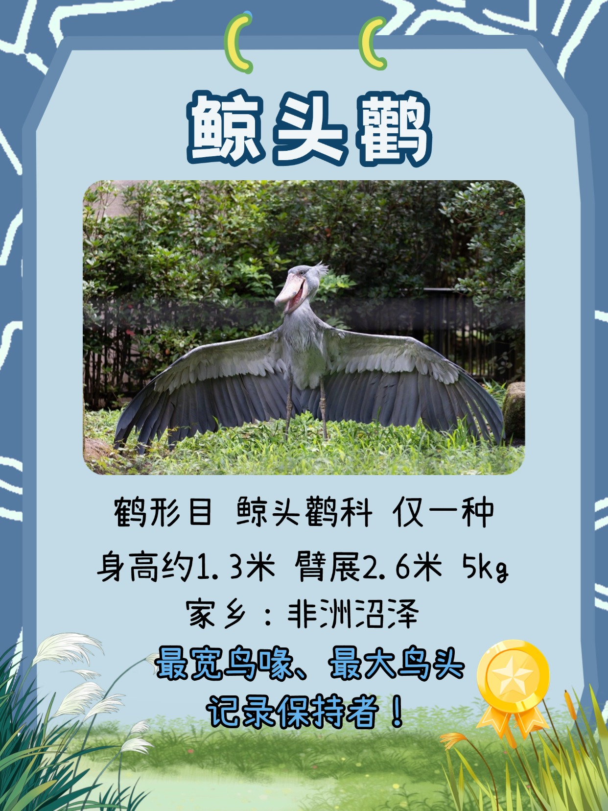 鲸头鹳(学名:Balaeniceps rex),因喙部形似鲸鱼头+木屐鞋,得名“鲸面鹳”“靴嘴鹳”。它可是现存头部最大的鸟类!