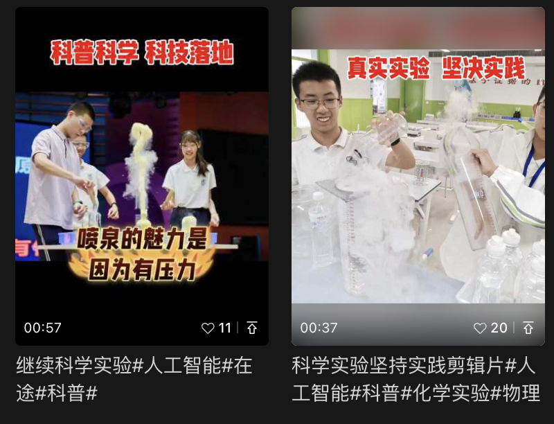 这两年我也在运营视频号,一开始分享实验视频,关注的多是科学、物理、化学老师,后来家长也多了起来。一年半下来,攒了5000多关注、300多个短视频,除了记录生活,每个视频里都藏着科学的小知识点——物理、化学、生物、地理,都是中小学阶段会接触的内容。