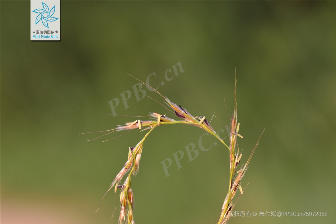 芒的圆锥花序直立紧凑,长 15-40 厘米,小穗具显著的芒(类似麦芒的细长结构),颜色以黄为主,夹杂少量绒毛,整体色调偏棕黄。