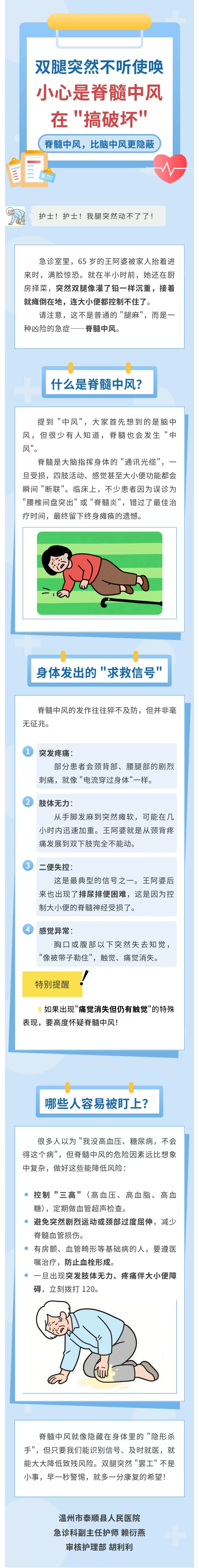 双腿突然不听使唤,小心脊髓中风