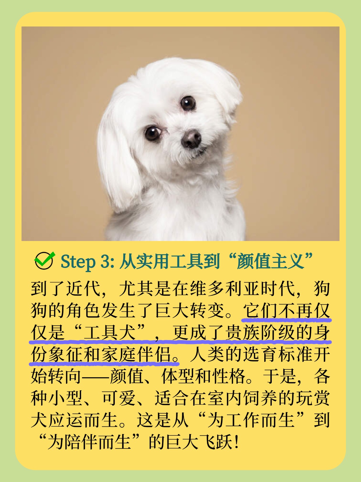 它们不仅是帮手,更成了家庭伙伴和身份象征。于是,人类的审美选育开启:博美、吉娃娃、西施……各种小巧可爱的玩赏犬登场,从“为工作而生”转向“为陪伴而生”。