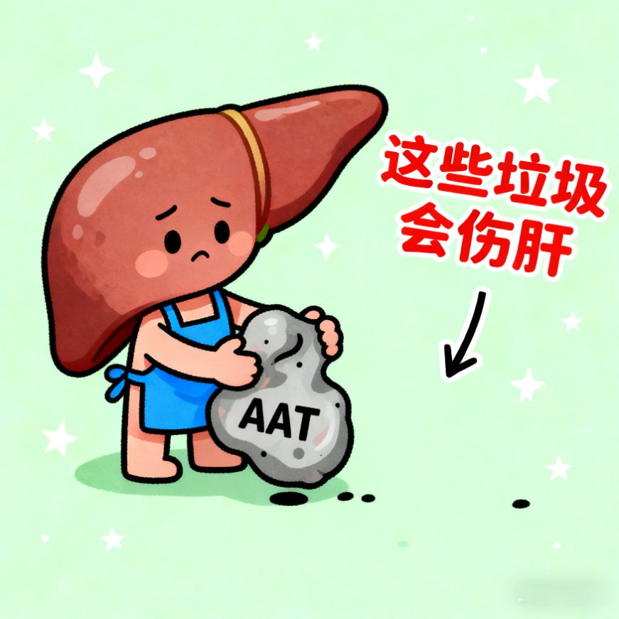 而生产出来的AAT“残次品”堆积在肝细胞里,造成肝脏炎症、纤维化甚至肝硬化。