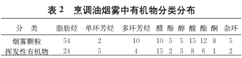 首先是各种有害分子:油烟的组成非常复杂,其中包含了无机物和有机物。研究人员采用气质联用法对烹饪油烟的有机成分进行了探究,将收集到的油烟雾颗粒及挥发性有机物进行 GC-MS 分析,共检测出 196 种成分,可分为醛、酮、烃、酯、酸、醇及芳香族和杂环化合物,部分有机物如下表所示[1]。