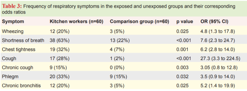 5 Neghab M, Delikhoon M, Norouzian Baghani A, Hassanzadeh J. Exposure to Cooking Fumes and Acute Reversible Decrement in Lung Functional Capacity. Int J Occup Environ Med. 2017 Oct;8(4):207-216.