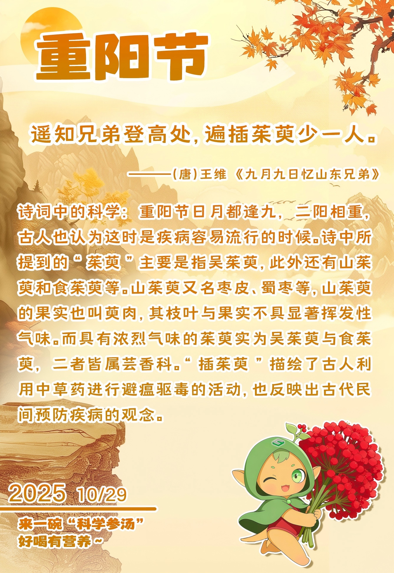 今夜,无论您是否与家人团聚,都请记得,科学的奇妙与人文的温情,始终相伴左右。虽此时此刻可能有“遍插茱萸少一人”的缺憾,但这份思念本身,就如同茱萸的香气,虽无形,却有力。